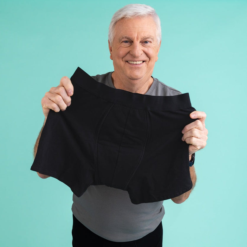 Unsere nachhaltige Inkontinenz-Unterwäsche für Männer und Frauen bietet eine komfortable, zuverlässige und vor allem diskrete Lösung bei Blasenschwäche. Jede Slip- oder Boxershorts besitzt ein modernes Design mit dezenten Sauglagen, die bis zu 200 ml aufnehmen können – so fühlt es sich für dich an, als würdest du ganz normales Unterwäsche tragen.